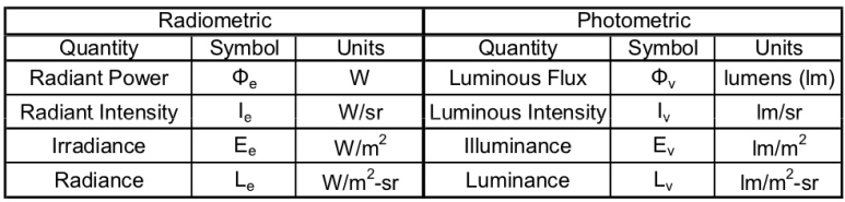 1. 광량을 측정하는 개념을 Photometry라고 하며 사람 눈이 인지할 수 있는 가시광 영역대에서의 전자기복사 에너지를 뜻합니다. 복사된 에너지가 가지는 에너지인 Radiometry와 구분해야 합니다.