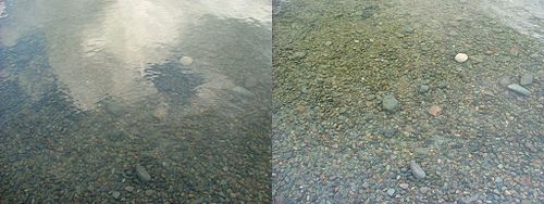 아래 그림은 편광필터의 사용여부에 따른 사진의 변화를 보여줍니다. 좌측사진이 편광필터 미적용, 우측이 적용한 사진입니다. 사진만 보고도 편광필터의 사용 목적을 유추할 수 있겠죠?