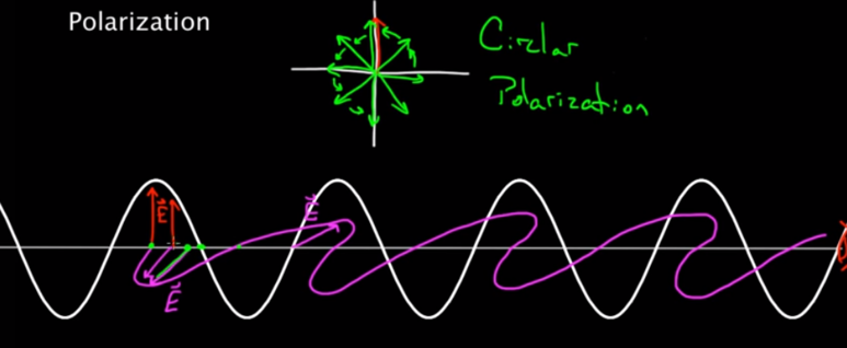 2) 전기장이 크기가 같고 서로 수직이며 phase가 90도인 두 linear polarization의 조합으로 이루어진 편광을 circular polarization,