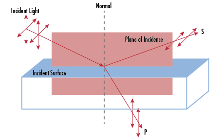 전기장의 진동방향이 입사평면과 수직한 경우 수직편광 또는 s-편광(s는 독일어의 senkrecht(수직)에서 유래)이라고 하고 반대로 전기장 진동방향이 입사평면과 평행할 경우 수평편광 또는 p-편광(p는 독일어의 parallel(평행)에서 유래) 이라고 합니다.