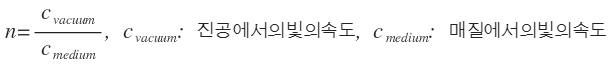2-1. 진공에서의 빛의 속도와 특정 매질에서의 빛의 속도의 비율 = n